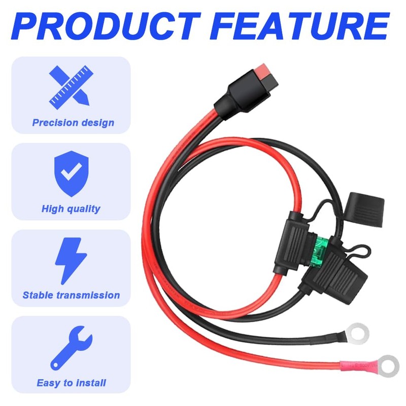 - [Product Included]: 1 x 45A Connecter to Ring Terminal Cable, 2 x 10A Fuse, 2 x 15A Fuse, 2 x 20A Fuse, 2 x 25A Fuse