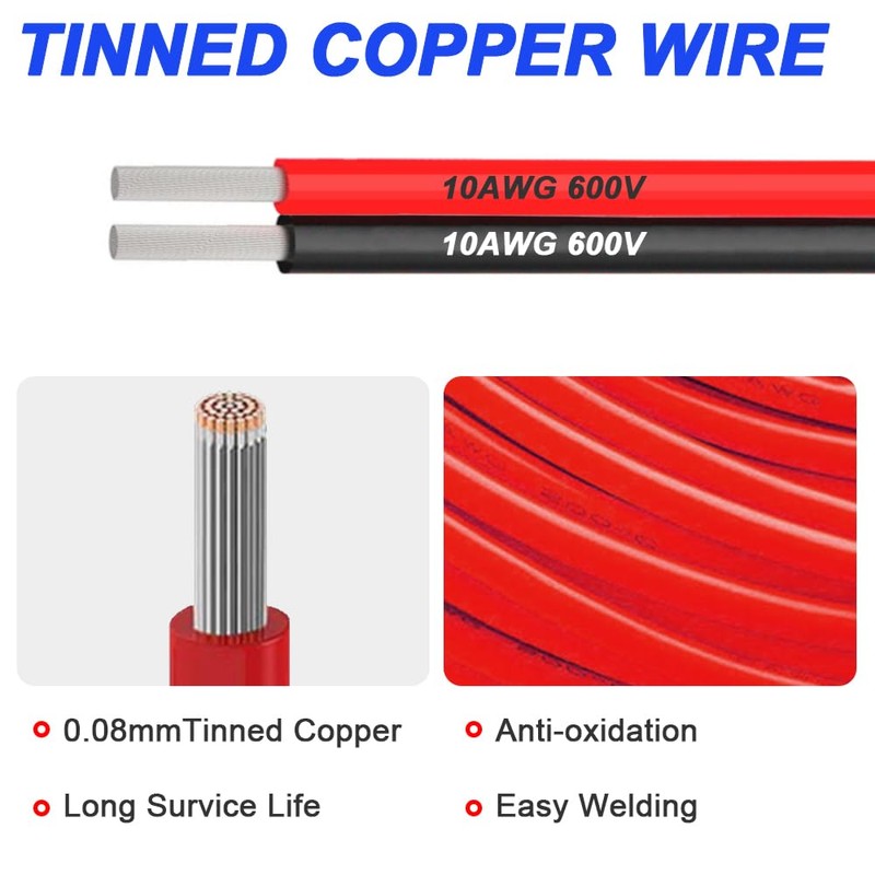 - [10AWG copper wire]: The cable is made of high-quality material, flexible, flame-retardant, and high-temperature resistant. The low-resistance, low-loss pure copper wire core can effectively avoid the problem of burning wires due to a series of full loads.