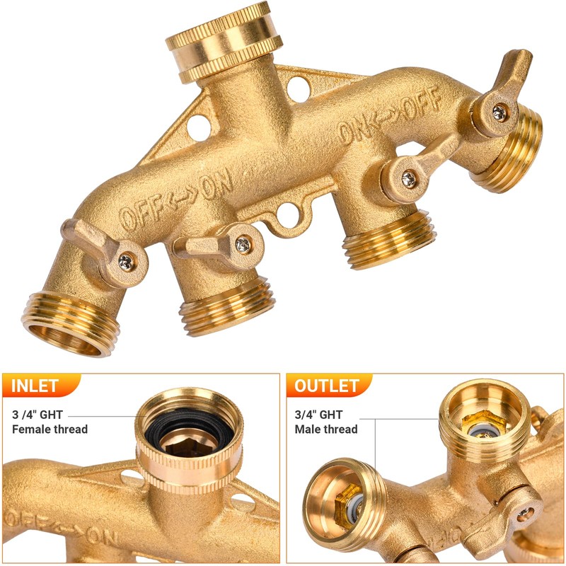 - LEAKPROOF DESIGN - 4 Way Hose Splitter is equipped with turn on/off ball valves, 8 washers and tape, pefect for tight closure.