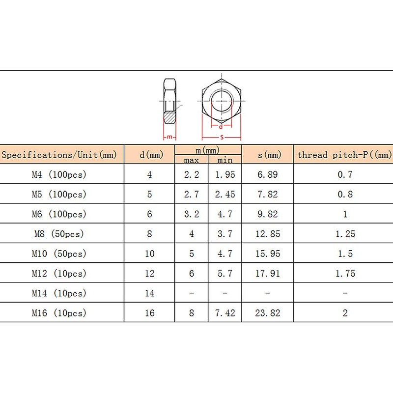 3. Specifications: Example: M3 (100 pieces), 100 nuts with a diameter of 0.1 inch (3 mm)