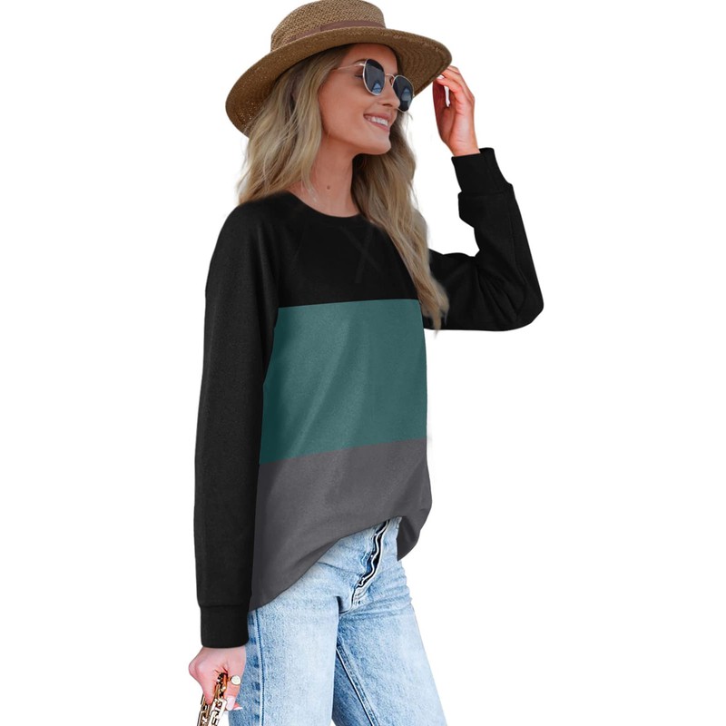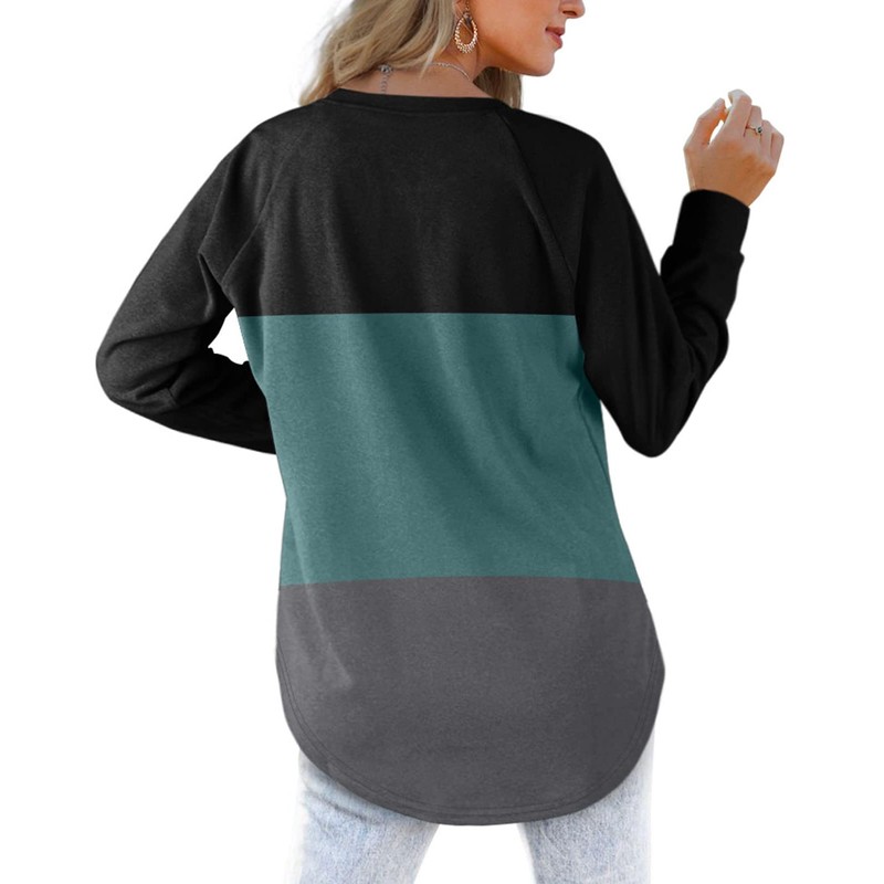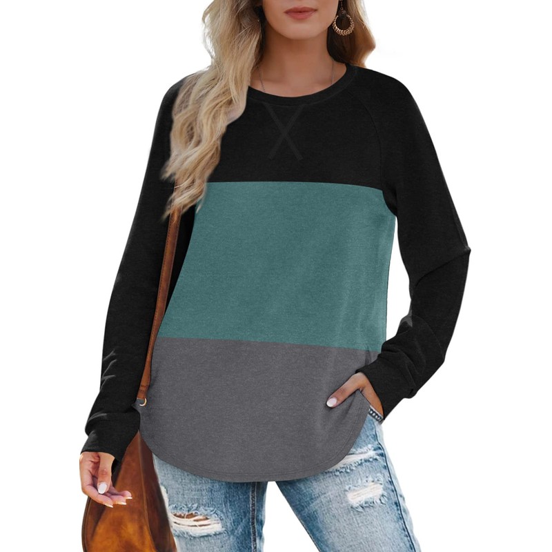 XIEERDUO Crewneck Sweatshirts Pullover Color Block Tops For Women Loose Fit Blue L