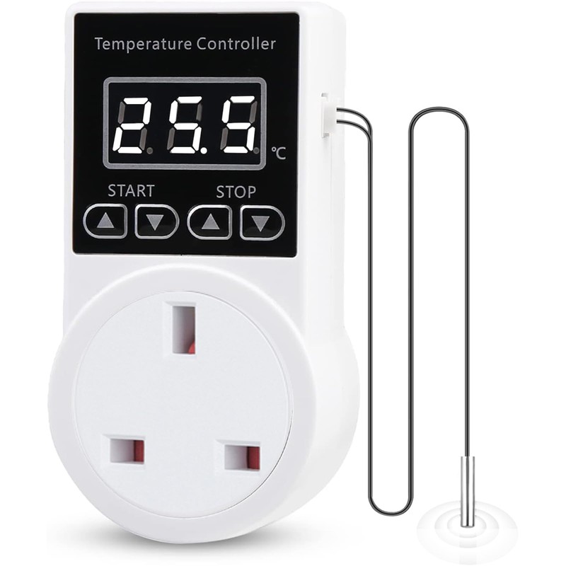 - Simple Setup - Temperature Controller Plug no cables, only needs to put the 2 meters long waterproof head on the place where the temperature needs to be measured and then you can measure the temperature you want to know. Digital Thermostat Plug user-friendly design ensures a quick and hassle-free setup process, allowing you to begin regulating temperatures promptly and efficiently