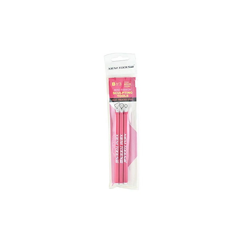 Xiem Tools USA Mini Ribbon Sculpting Tools, Heat Treated Steel, Set B includes 3 tools with Pink handles (MRS3B-10290)