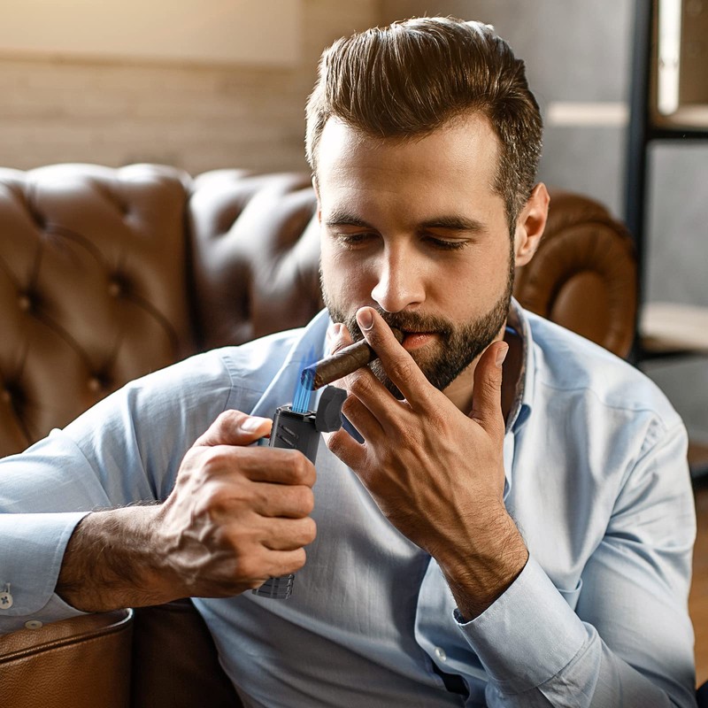 - PERFECT DESIGN: High-quality Sturdy Metal Body, 3-flame Cutting Cigar Torch Lighter with Oil Level Window, Universal Gas Filling Valve Can Refill Butane Lighter, Flame Height Adjustable.Easy and Safe-Easy to Use.