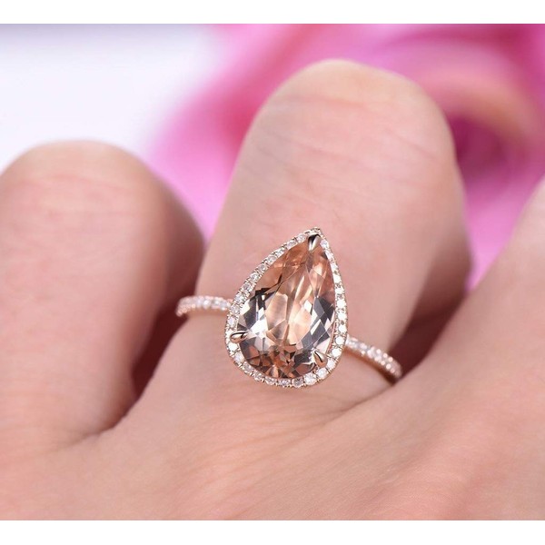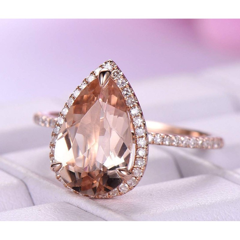 - ❤ The main stone 8x12mm, 5.25 carats pear-shaped artificial citrine zircon has a faceted effect, and the eternal teardrop halo design can perfectly reflect light.