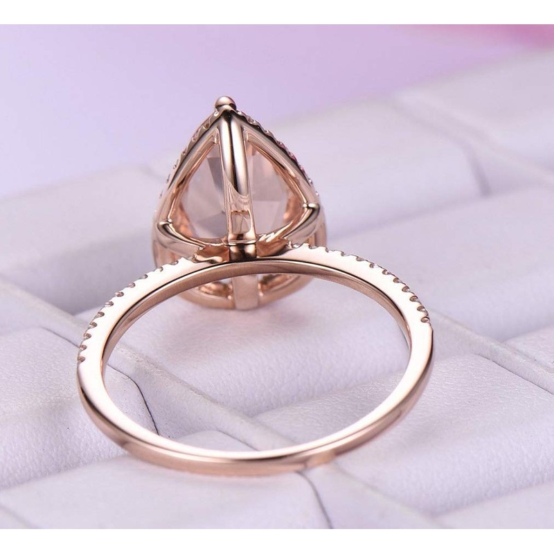 XIGUA MELON Drop-Shaped Pear Cut Champagne Tone Crystal Cubic Zirconia Ring,Luxury Copper Plated Rose Gold Wedding Ring for Women (US Size 9)