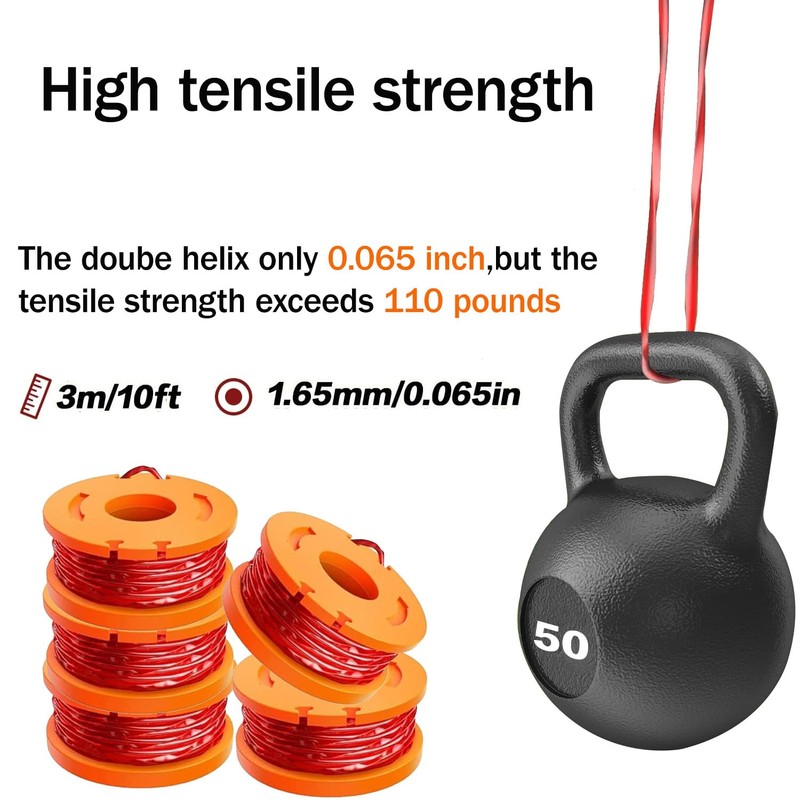 - 【HIGH EFFICIENCY】- The trimmer spool is made of upgraded ABS and nylon polyamide materials, with a tensile strength of over 40KG, 35% more durable than other brands, saving time in replacing the spool.