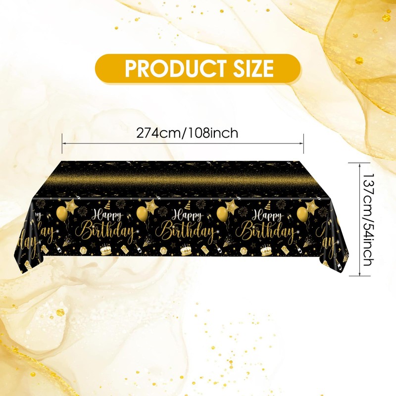 - Wide Application: Black tablecloths plastic are suitable for most occasions, you can use birthday tablecloth for birthday parties and anniversary celebrations. The black and gold tablecloth can also be perfectly matched with black and gold birthday banners, black and gold birthday plates, and black and gold birthday balloons to make your birthday more perfect.