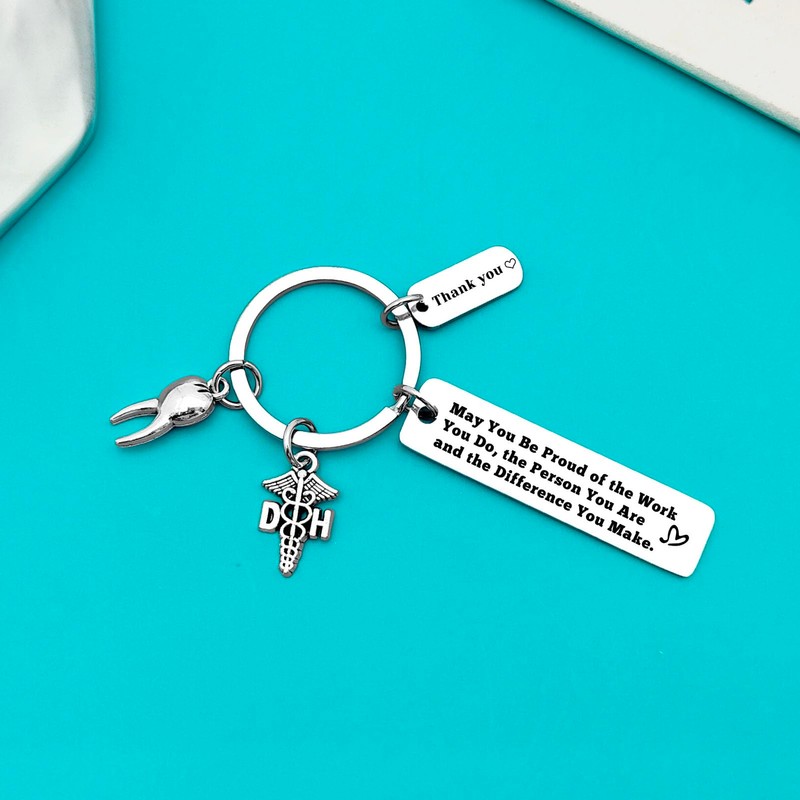 - Dental Assistant Gifts: This keyring make a great present for a dental assistant colleague, dentist,dental hygienist, dental assistant, dental nurse. Ideal for birthday gifts, christmas gifts,thanksgiving gifts, appreciation gifts, thank you gifts, leaving gifts, retirement gifts, mothers day gifts, fathers day gifts, valentine's day gifts, anniversary gifts, new year gifts or just because.