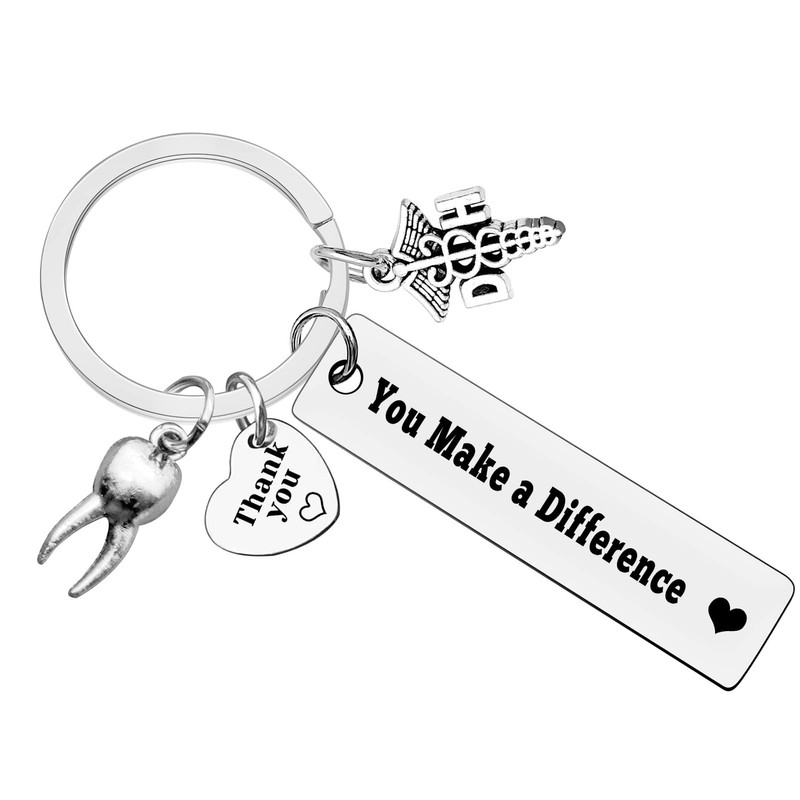 - Dental Hygienist Keyring: Engraved with “You Make A Difference”. This thank you keyring makes a great dental gift for anyone who works in a dentists or dental practice.