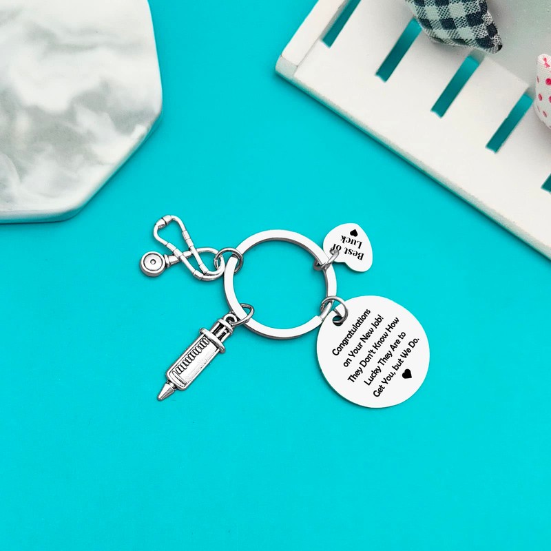 - Colleague Leaving Gifts for Nurse: The keyring engraved with "Congratulations on your new job!They don’t know how lucky they are to get you,but we do". Funny leaving gifts for nurse colleague promotions, moving away, quitting, last days, Interns, end of contracts.