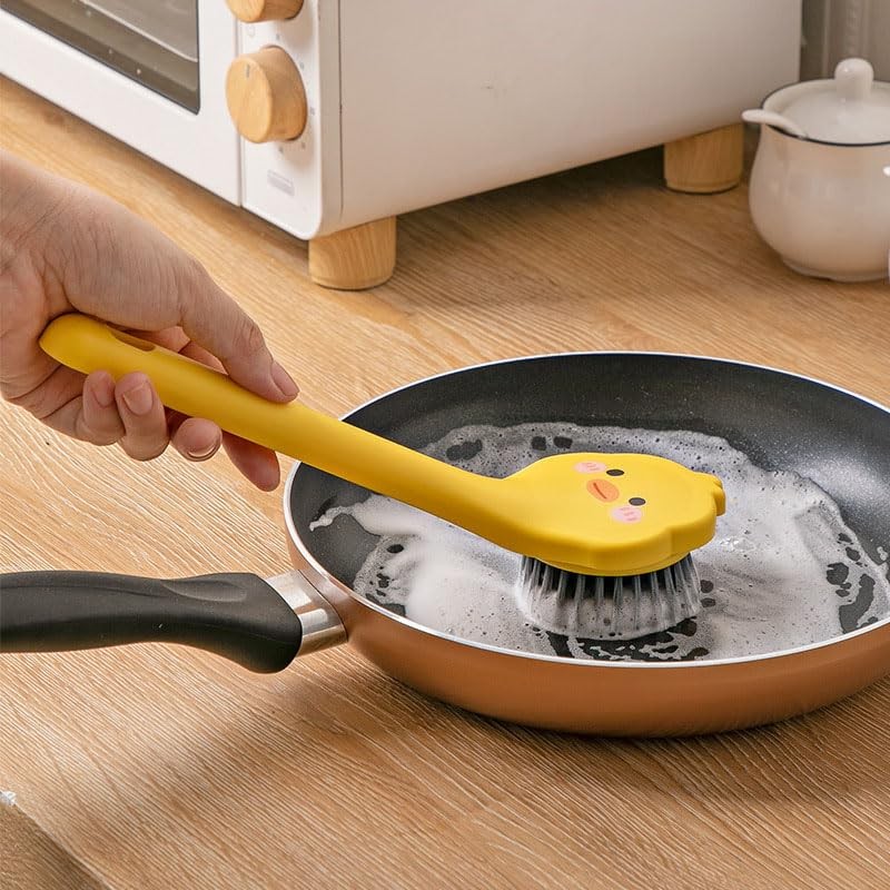 Adorable Design: The cute yellow duck design of this dish brush adds a touch of fun to your cleaning routine.