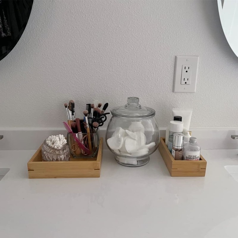 - Perfect Decor: The minimalist design is superior to any decor, the warm tones created by the natural bamboo structure add a natural atmosphere to your home. Pleasing decoration on your kitchen table, bathroom vanity counter, toilet tank top, office table etc.