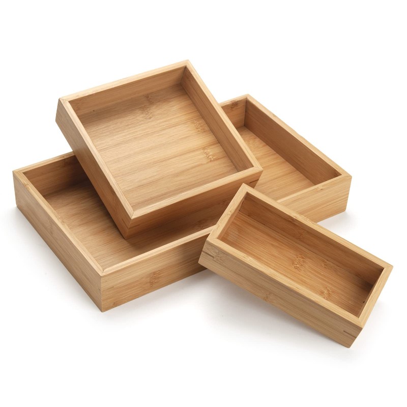 - Size: Set of 3 bamboo basket trays. S: 20 x 10 x 5 cm (7.9 x 3.9 x 2 inch) M: 20 x 20 x 5 cm (7.9 x 7.9 x 2 inch) L: 37 x 23 x 6 cm (14.6 x 9.1 x 2.4 inch), different size and shape baskets meet your different storage needs.