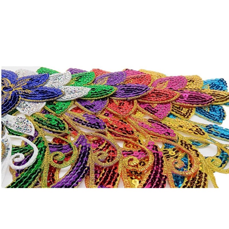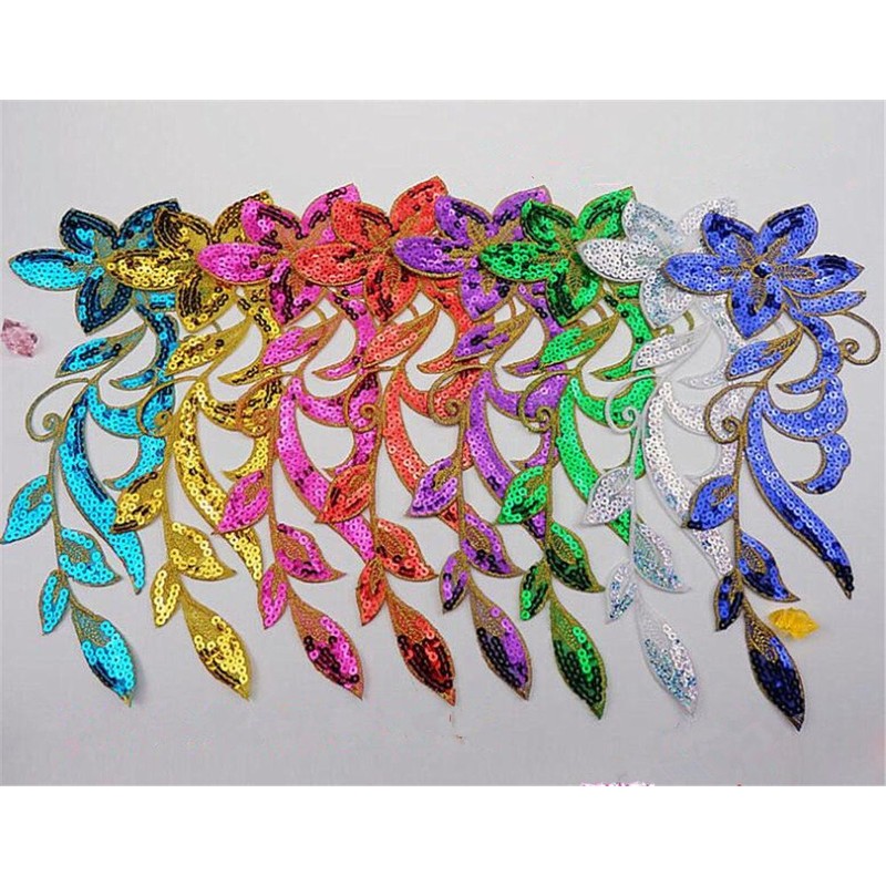 Ximkee 1 Pair Dancing Flower Sequin Sew Iron on Applique Embroidered Patches-SkyBlue