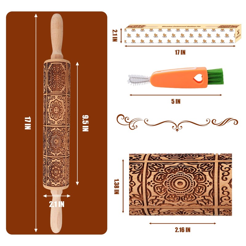 - PROFESSIONAL BAKING TOOL:Crafted from solid beech wood, this 17"x2.1" embossed rolling pin features ultra-clear 3mm deep patterns – perfect for pastry making, cookie decorating supplies, and artisan baking gadgets