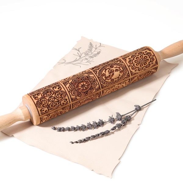 - ERGONOMIC HANDLES & DEEP IMPRESSION: Non-slip 3.54" handles ensure control while rolling. The 9.5" engraving zone transfers crisp details onto dough – a must-have rolling pin with design for springerle cookies and festive treats