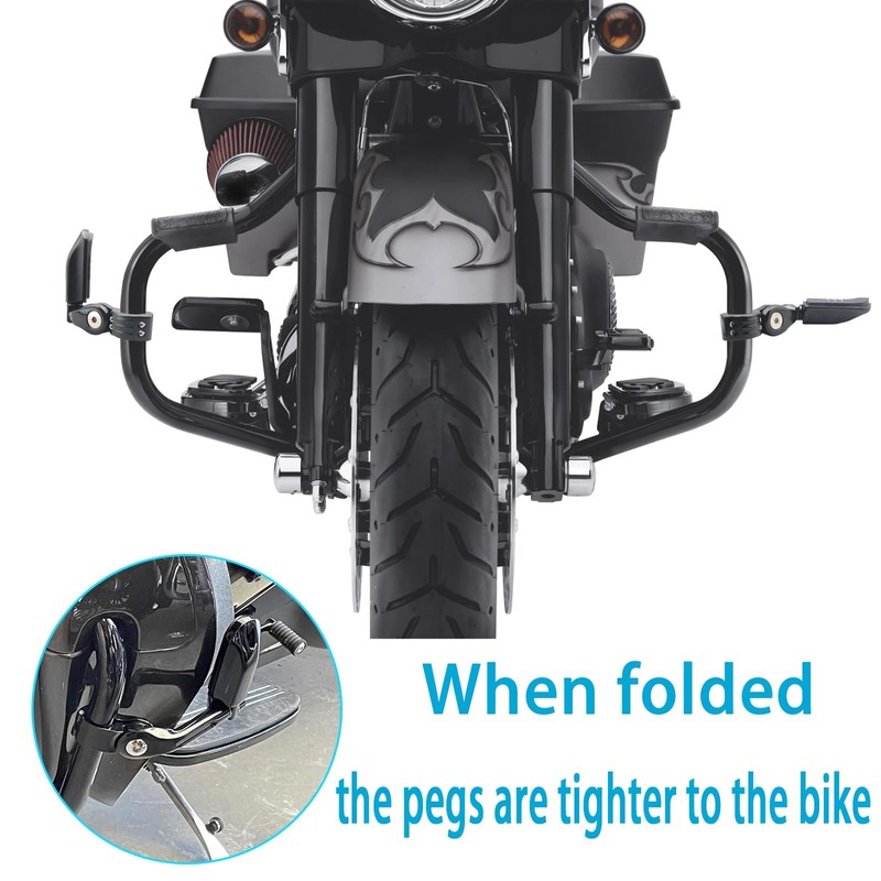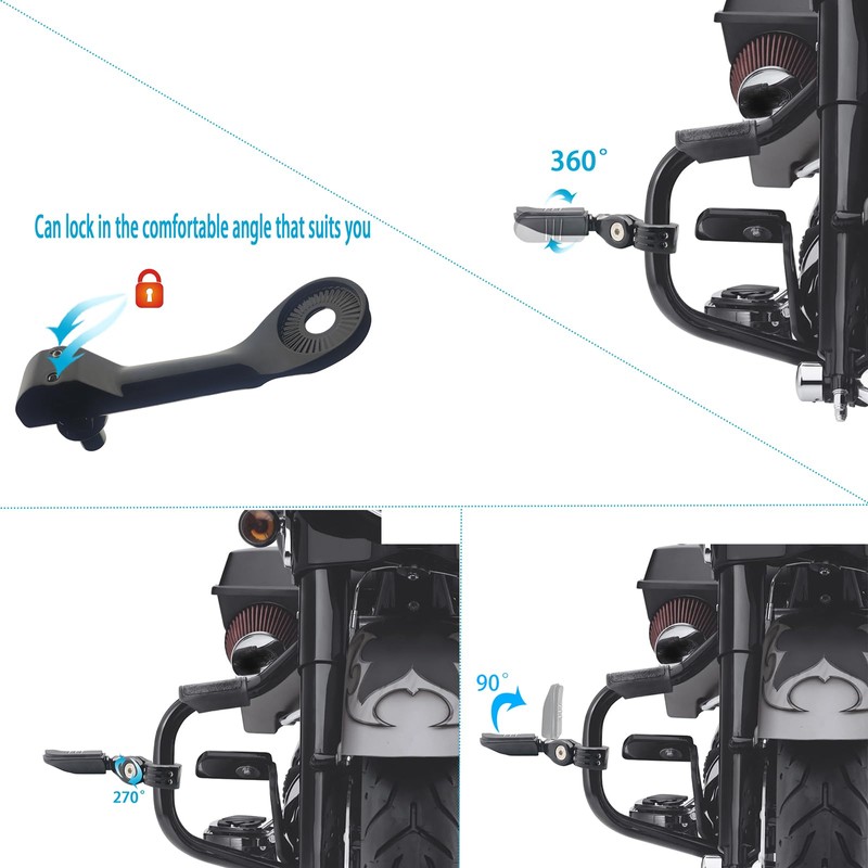 - Flexible for Your Needs: XINCHIMT Highway Pegs can 360° rotation, it's convenient for you to adjust the angle according to their needs. 270° Adjustable allows to up or down adjustment. 90° foldable allows to retract the footpeg by folding it upward 90° for a compact, tidy look.