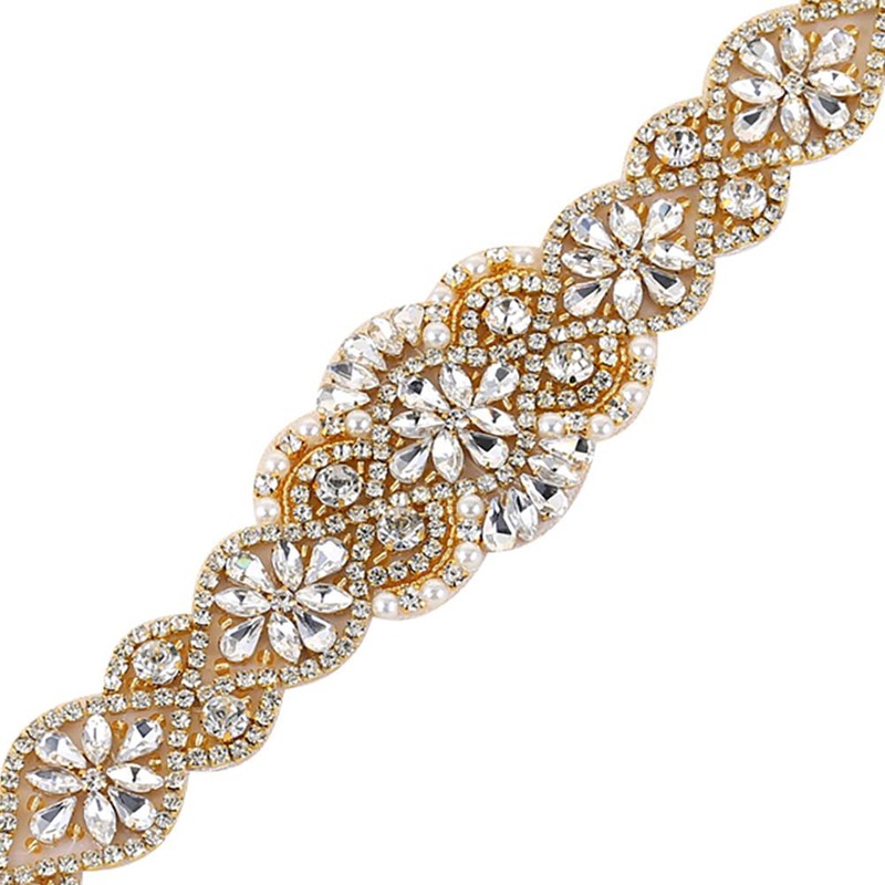 XINFANGXIU Gold Beaded Trim Crystal Rhinestone Applique Embellishments for Bridal Wedding Dress Sash Bridesmaid Gown Womens Prom Formal Belt