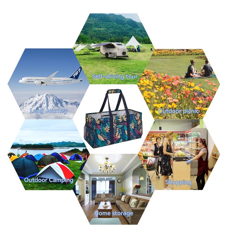 - Made of high-quality 600D Oxford fabric with waterproof PVC material, this foldable tote bag is durable and perfect for any occasion.