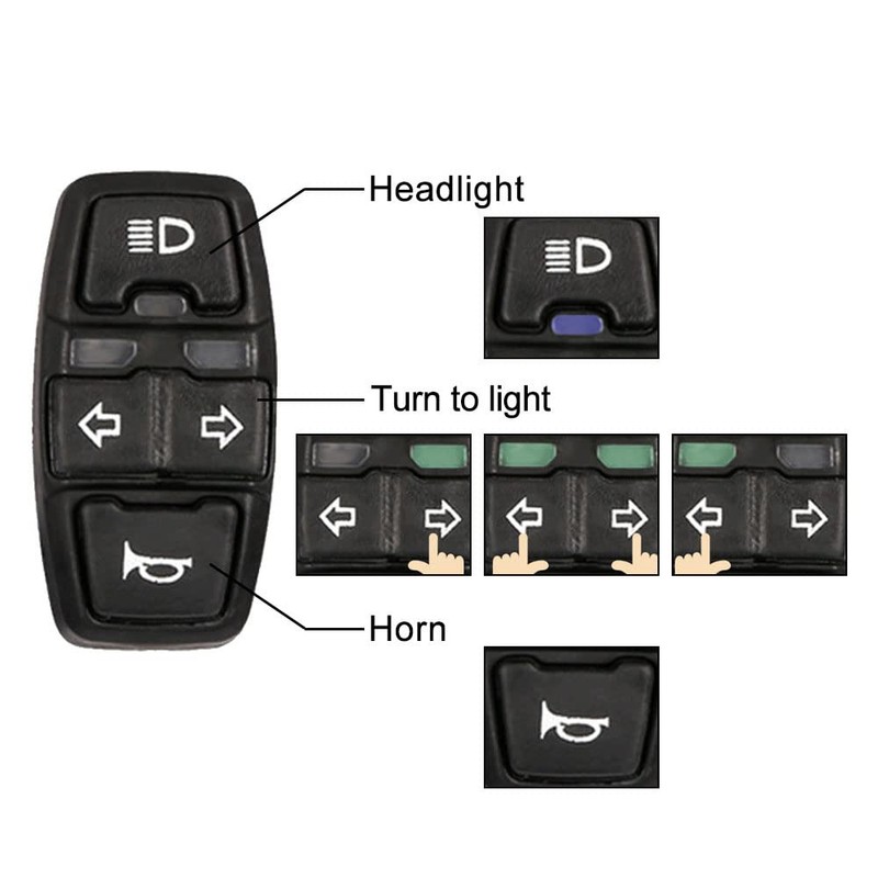 Function: controls the on/off of the headlight horn and lights of the electric bike,and the left and right direction functions of the tail lights.