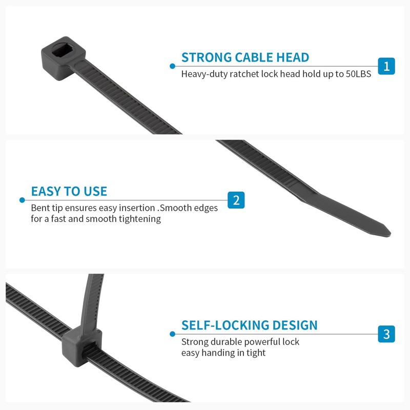- ★【Great Design】Self-locking fastener design, sturdy and durable, easy to operate. The width of our cable tie is 0.18inch/4.8mm, which makes the cable tie stronger than the same size cable tie on the market and tensile strength could handles most purpose of binding in life.