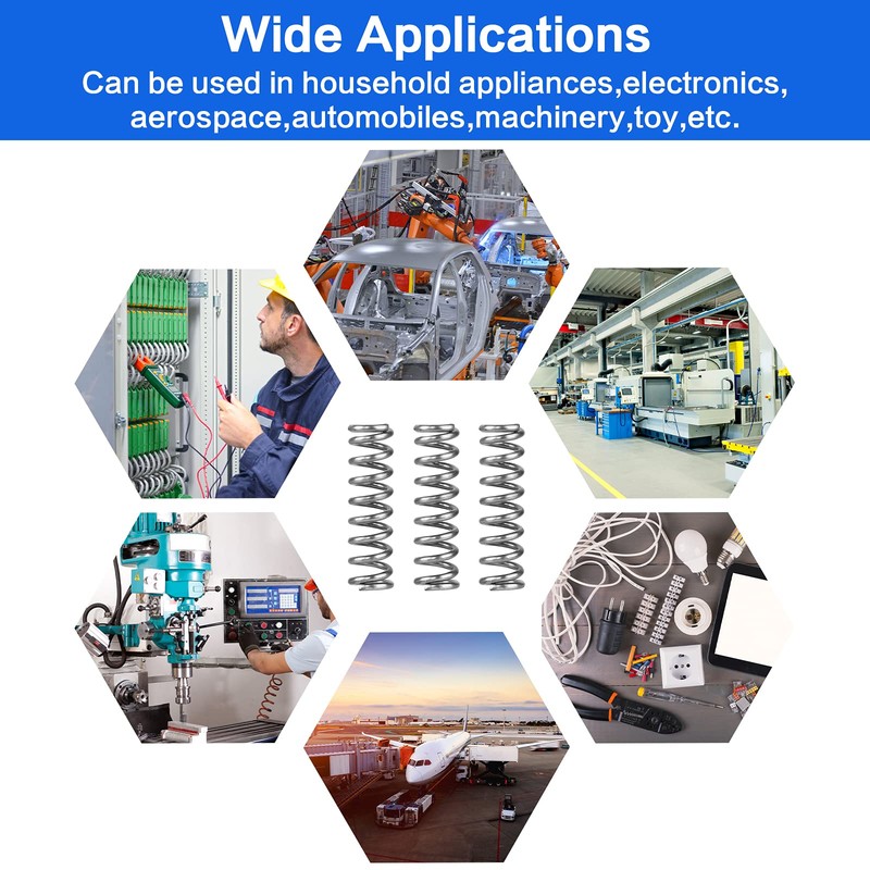 - Wide Application:This small compression springs can be widely used in many fields, from household appliances to various electrical equipment, such as doors, curtains, automobiles, pianos, umbrellas, scissors, electric toys, electrical equipment, lawn mowers and so on.