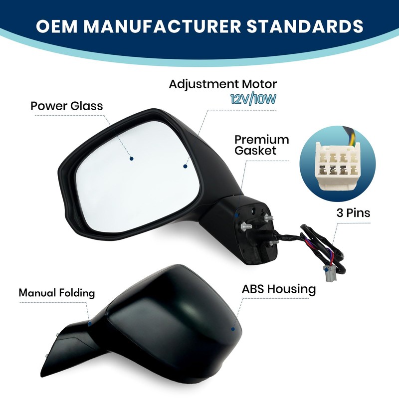 - 【Function Configuration】Connecting Plug-ins:3 Pins.With Power glass, Manual Folding丨Non-Heated 丨Match to Black .