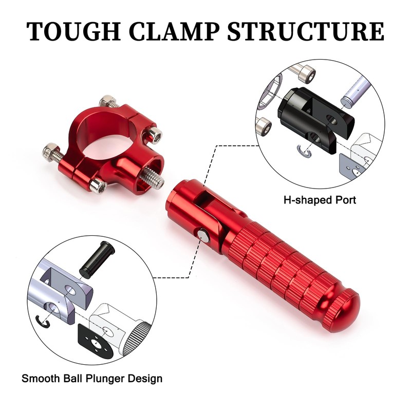 - Easy Installtion: These highway pegs clamp directly onto 1-1/4" engine guards with the included mounting hardware. Simple bolt-on installation with an adjustable angle to match your preferred riding posture