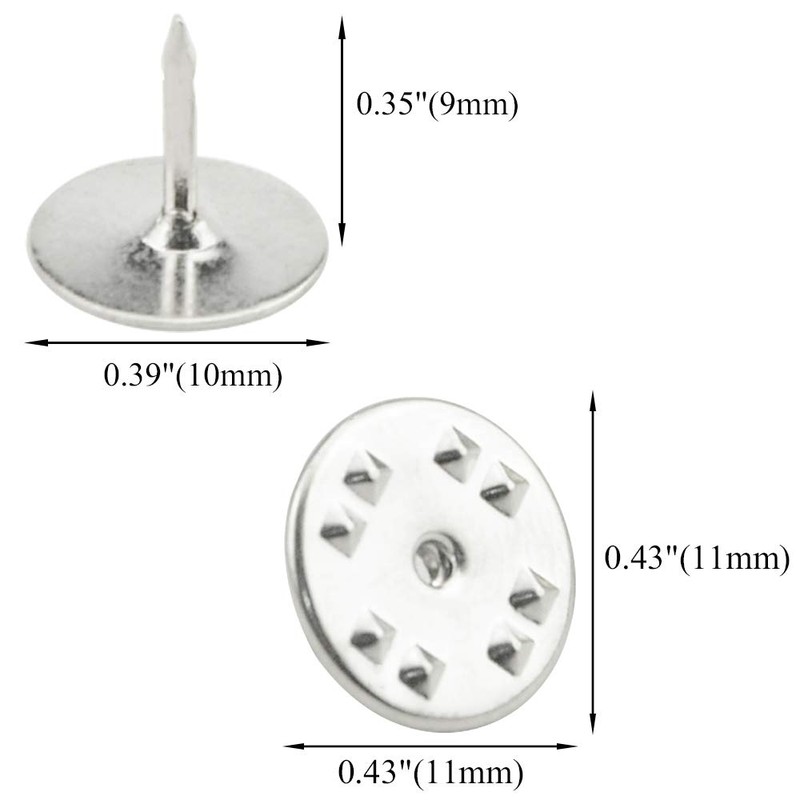 - 2. Silver Pin size: 10mm in diameter and 9 mm in length; Clutch backs pin size: 11 mm in diameter. The gap between them is very small and tight clasp