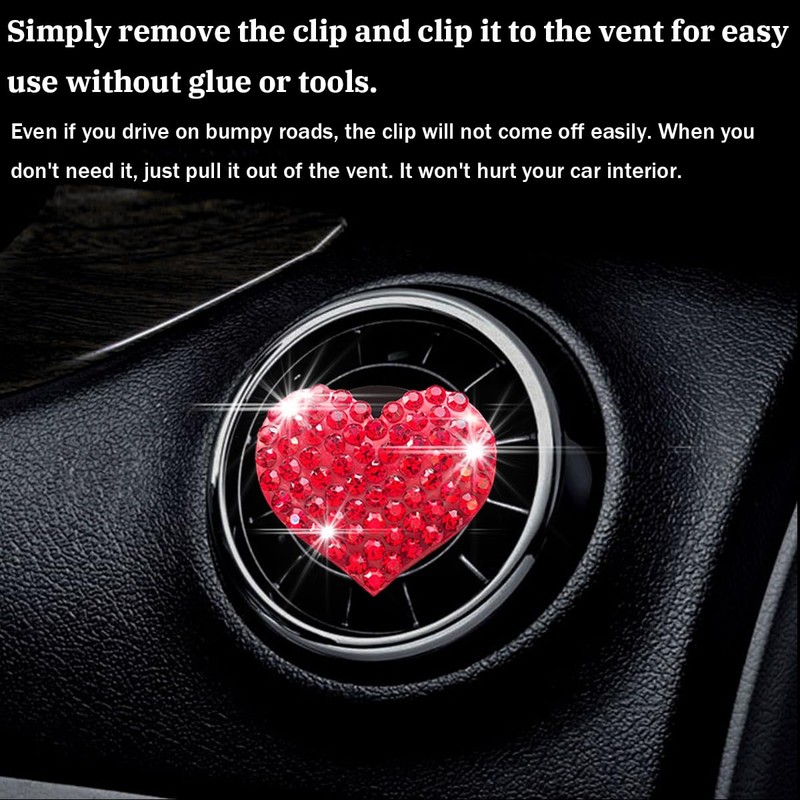 - 【Package Included】: You will receive 2 heart charm car air vent clips. It features heart-shaped design which attracts more attention. Glittering rhinestone's surface can be decorate d your car's air conditioning vents very well.