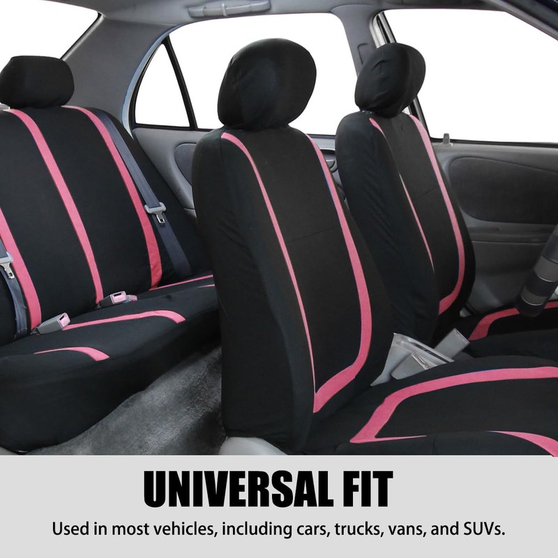 XINLIYA Car Seat Covers Full Set, Breathable Premium Cloth Automotive Seat Cover, Universal Front and Rear Seat Covers, Easy to Install Car Accessories for Most Cars Trucks SUV (Pink)