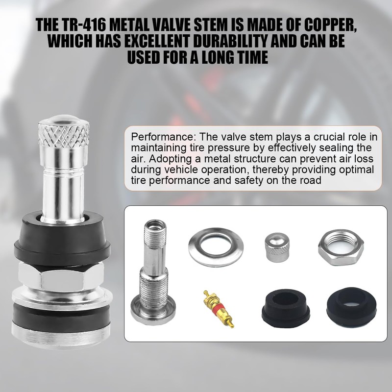 - Complete Package: Each package includes four TR416 tubeless tire valve stems and the necessary washers, providing you with a practical and reliable solution for your tire maintenance needs. Whether you're performing routine maintenance or replacing old valve stems, this kit is a great accessory.
