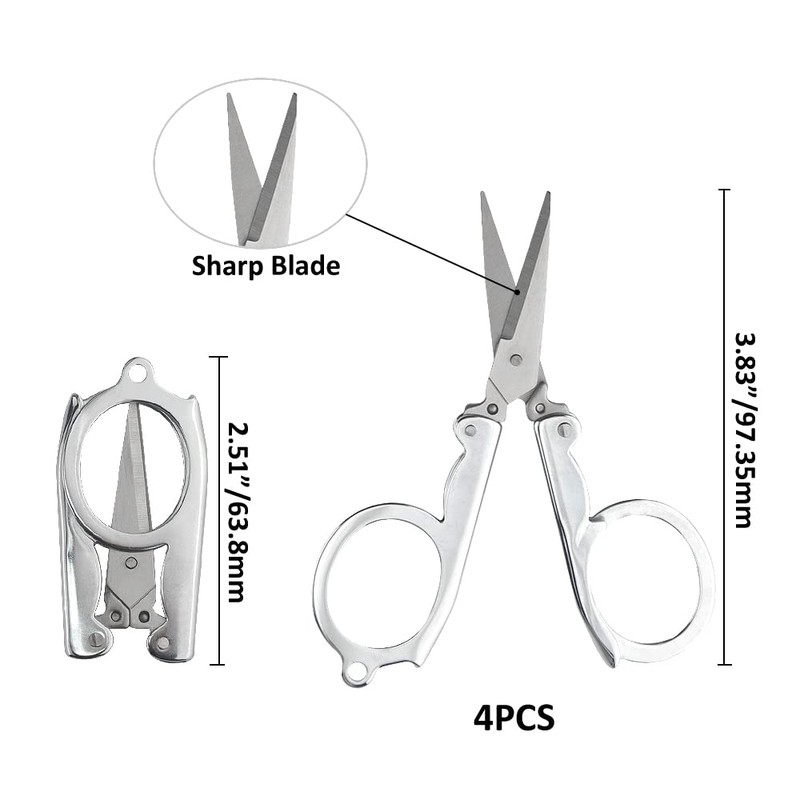 XINMEIWEN 4 Pack Small Folding Stainless Steel Cutter - Mini Scissors Set for Home, Office, Travel