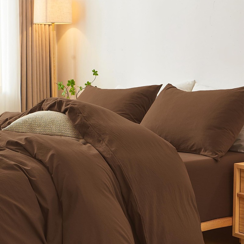 XINMIANFANG 100% Washed Cotton 3 Pieces Duvet Cover Set Linen Touch Natural Wrinkle Comfortable Breathable Durable (Full, Cocoa Brown)
