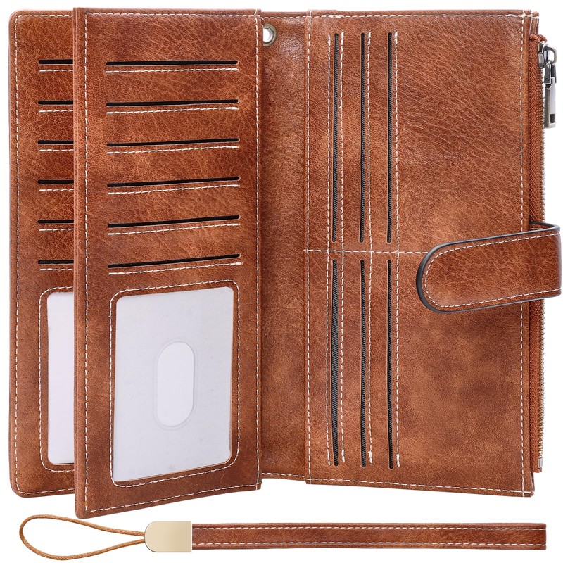 - Compact Large Capacity: The size of leather wallets for women is 7.87 4.13 0.79 inch (20 10.5 2 cm). This women's wallet has 16 card slots, 4 ID windows/photo, 5 cash compartments and 1 zipper pocket. It will be a good size to hold your cards and everything else you need to carry