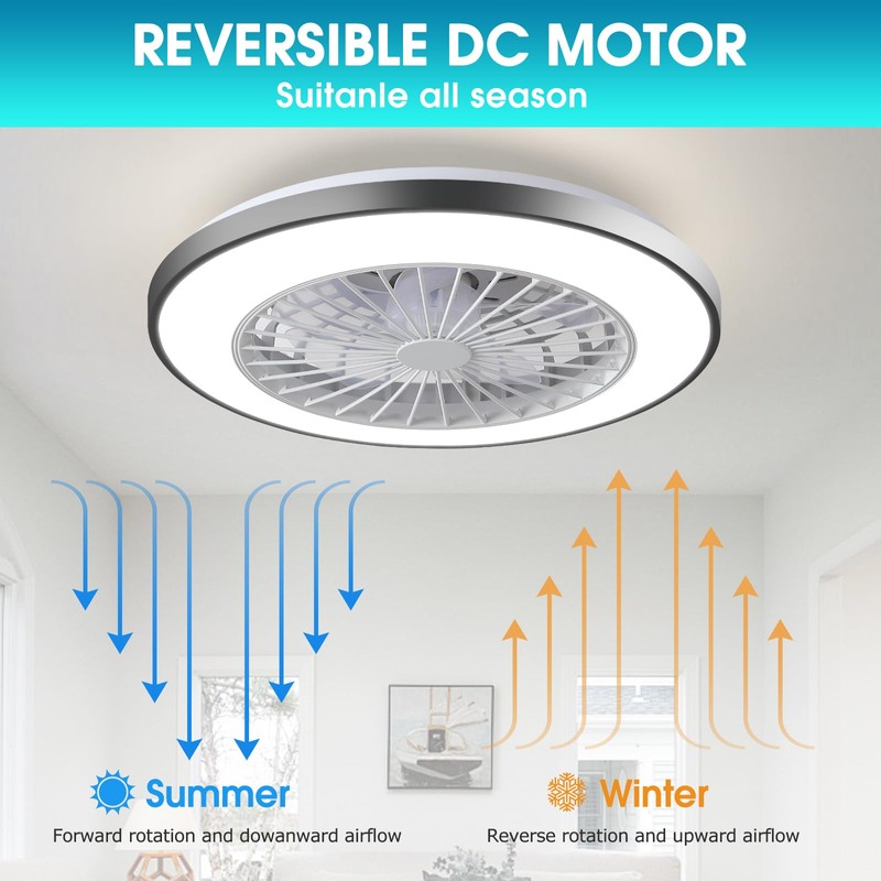 【NOISELESS REVERSIBLE MOTOR】- The low profile ceiling fan with light remote control is designed with a pure copper reversible motor, you can choose between summer downdraft or winter updraft. The low profile ceiling fan with light adopt quiet DC motor which not only has strong wind speed, good quiet performance. The low profile ceiling fan with light will not produce more noise when it works. Create quiet and comfortable environment to you.