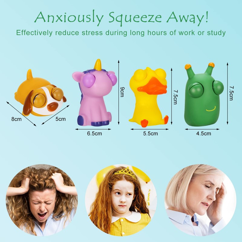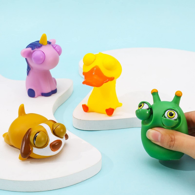 - Funny Squishy Squeeze Toy This pop out eyes toy is a sensory toy for kids and an anxiety toy for adults. It can help you get rid of stress and anxiety by squeezing, stretching and turning.