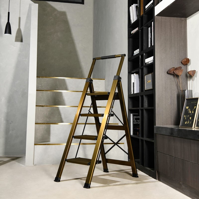 - 【SECURITY AND STABILITY】: This 4 step ladder was constructed out of thick and high-strength aluminum tube. The black fixing part between the handrail and main frame is made of high-quality aluminum alloy to ensure the ladder in use stronger and more durable.