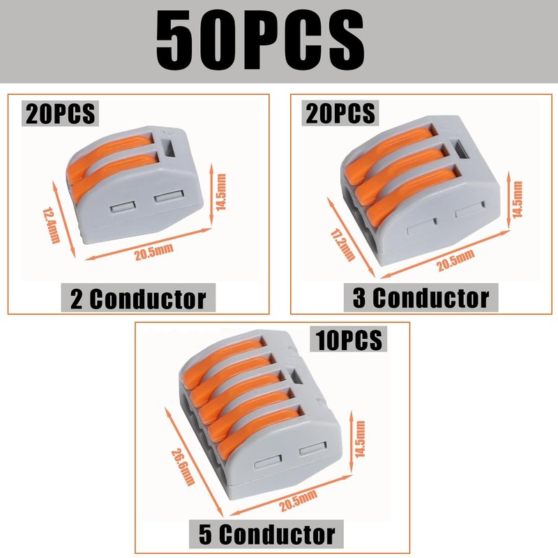 - Lever nuts wire connectors assortment kit Includes:You will receive 50 PCS 2/3/5 conductor lever wire connectors with Wire Stripper tool