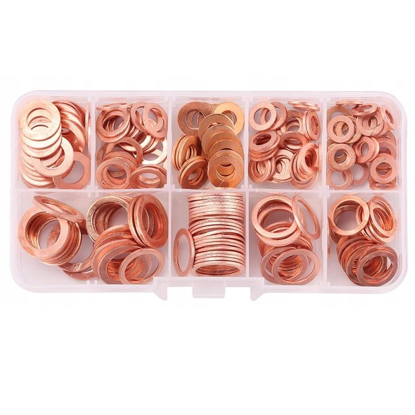 XINTAIHELE Copper Washers Assortment Set Metric Sealing Washers Sump Plug Crush Washer Oil Drain Plug Gasket Kit 200 Pieces