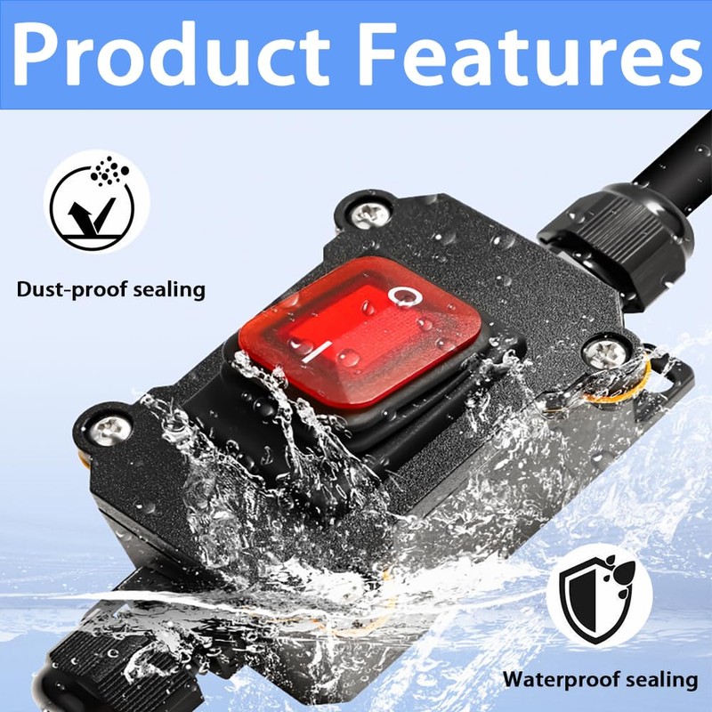 XINTAIHELE Inline Cord Switch Waterproof Outdoor Light Switch 12V 24V ON/Off Toggle Switch with Red LED Rocker Button Start Stop