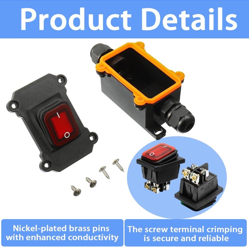 • Product Include: 1 x red light rocker switch + 1 x shell + 2 x PG9 waterproof joints + 4 x screw