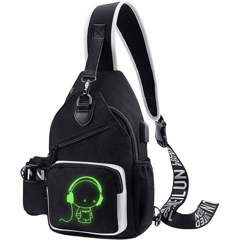 Xinveen Luminous Sling Bag Cross Body Shoulder Backpack Multifunction Chest Bag with USB Charging Port for Men Boys Travel Sports Music
