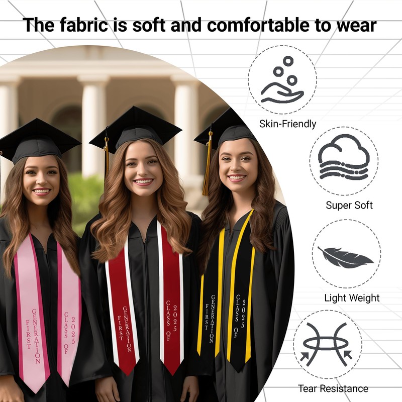 Honor students who are the first generation in their family to graduate. Our First Generation Stoles are hand- made with high-quality fabric and Multicolor for you choose.This is first generation stole that you will want to keep for a lifetime to commemorate your special day!