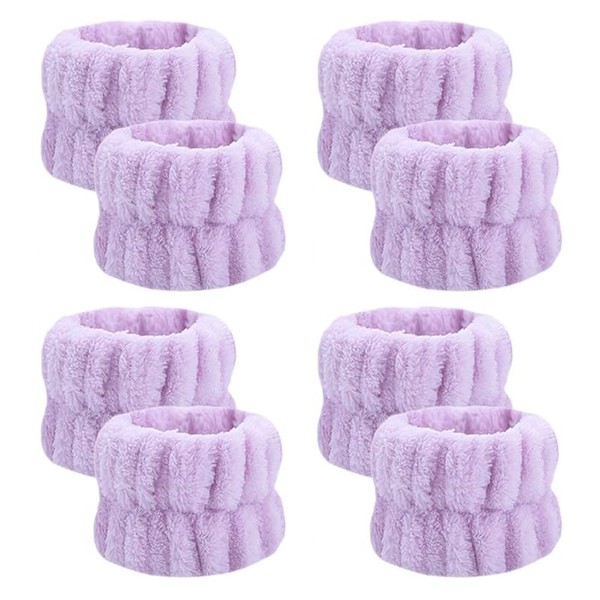 Xinwoxun 8 Pcs Women Face Wash Wristbands Microfiber Wrist Washband Spa Washband Wrist Towels for Washing Face, Prevent Water Running Down The Arms (Purple, A)