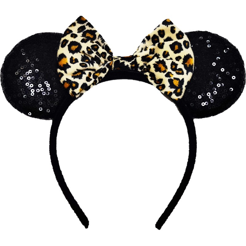 XINXIYAN Mouse Ears Headbands for Women Glitter Sequin Mouse Ears Bow Headband Birthday Party Princess Decoration (Leopard Print)