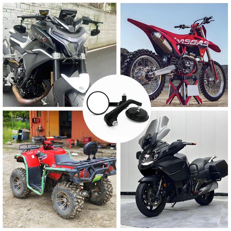 • 【Funcionalidad】Se adapta ampliamente a todas las motocicletas o bicicletas si utiliza manillares huecos estándar de 7/8 pulgadas de diámetro. El espejo convexo de alta resolución tiene un diámetro de 80 mm para garantizar la máxima cobertura y garantizar una visión clara. El diseño flexible con brazo largo y el espejo giratorio de 360 grados ofrece una visión amplia del entorno y evita distracciones y carga en el cuello.