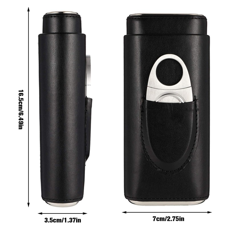 Xinzistar Cigar Case 3 Cigars, Leather Cigar Case with Cigar Cutter, Portable Humidor Cigars for Travel Short Trips (Black)