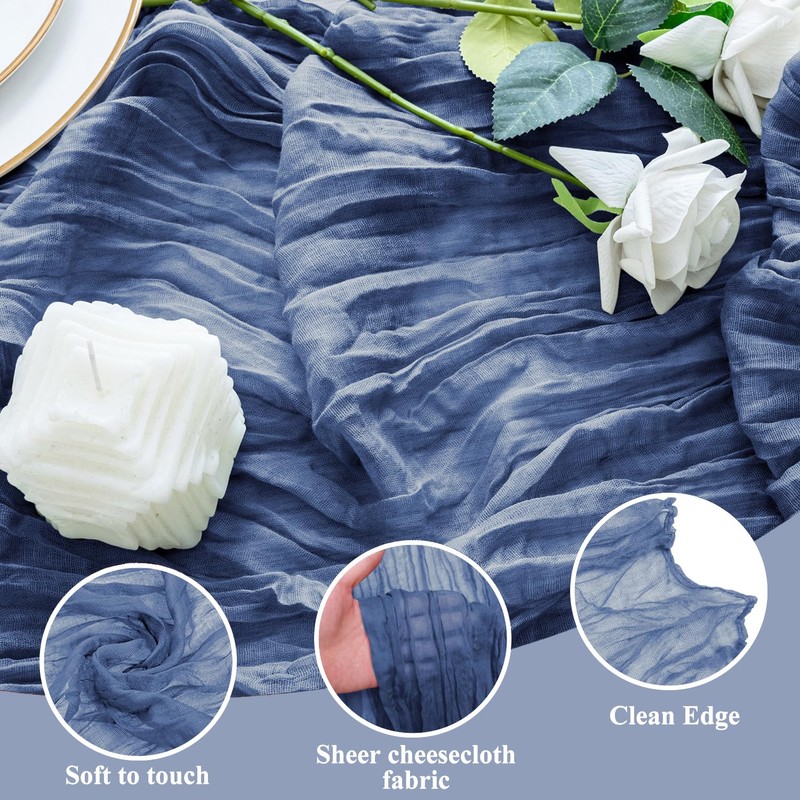 - 【Elegant Design】This romantic cheese cloth runner can be used as a decorative element for your dining table or party. It is an excellent addition to any event decoration, perfectly matched with flowers, candlesticks, and green plants, adding a touch of elegance to your overall decoration. Different colors and multiple quantities to choose from to match any event you want.